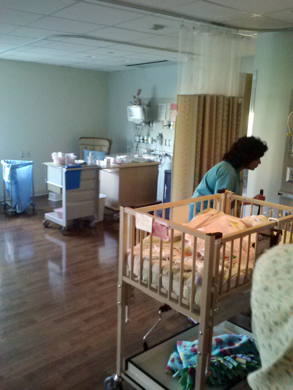We spent last night in the hospital in a “parent room” to give us some idea of what we are in for:http://youtu.be/h0bVhc0Gb7s. While we were there we got the lab results back for both girls and their hematocrits were much improved. This was the last major milestone for Natasha and she was given one last shot of EPO and discharged late this afternoon. The best moment came for me when they disconnected her from the monitors and we got to truly hold JUST our girl for the first time. She seemed so much lighter without the long cords connecting the monitor to the probes and the sense of freedom of movement – we could now go anywhere! – was a much bigger relief than I expected. So of course there was only one place we wanted to take her:http://youtu.be/8NZQRfOGH50….