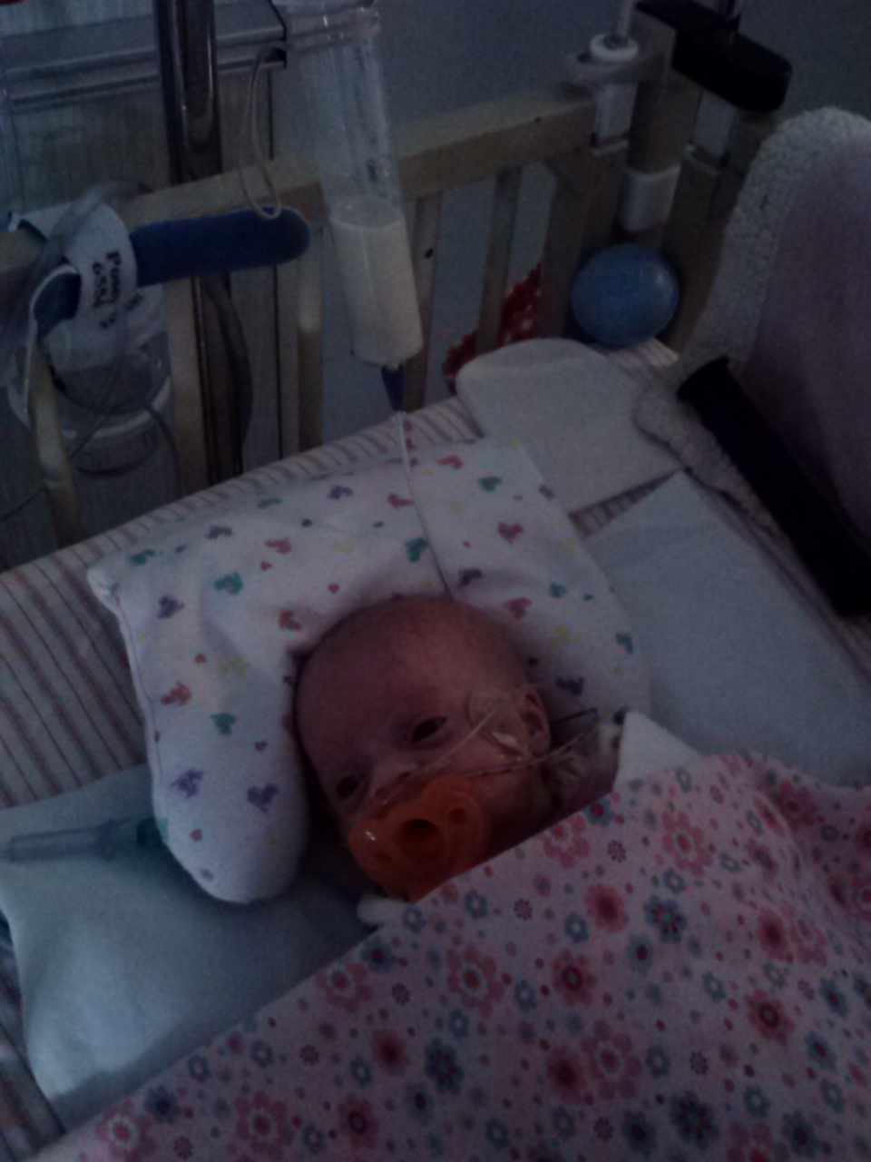 Big news for the day is that Natasha passed phase 2 of her feeding regime and so moves on to phase 3 – she will be fed on demand and must take 75% of her volume over 4 shifts (2 days). She apparently celebrated by pulling out her feeding tube, and probably flinging it into the air like one of those graduation hats. And so that’s out and (hopefully) done with. She is 3.15kg now which is 6lb, 15.3oz….or just under 7lbs. This is what she looks like: