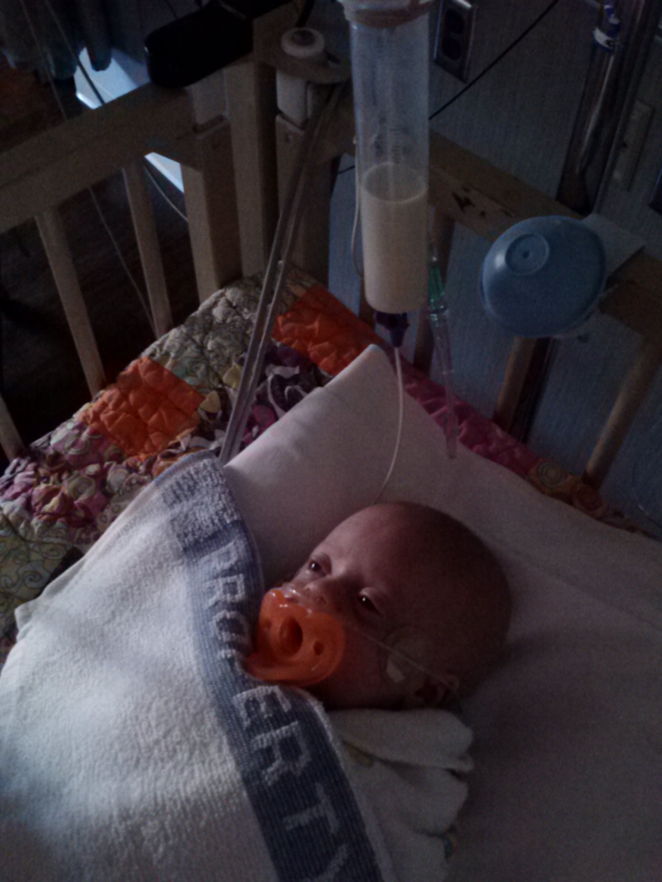 The biggest obstacle to the girls coming home is that they need to learn to feed so that they can have their feeding tubes removed. They still haven’t made a lot of progress on this front since last update, but that is not a huge surprise; takes a while to build endurance. There are two methods the hospital uses (Lara has one more method, ummm, up her sleeve?), Katarina feeding through a tube:
