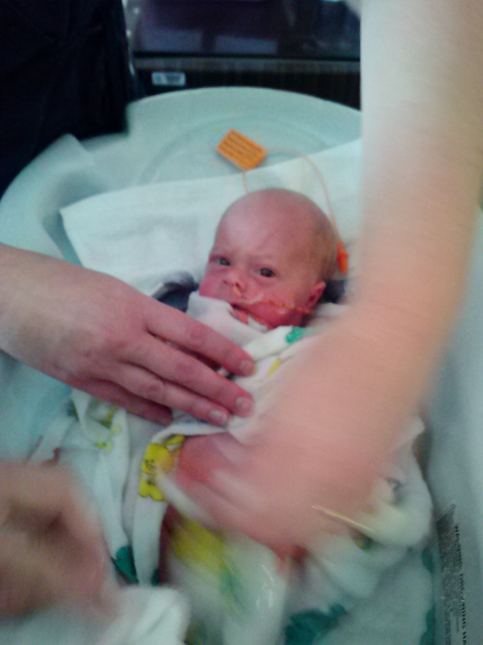 First up today, Katarina is still in the hospital, has made some progress but still has her feeding tube in and requiring some, but less, oxygen. She is still not tolerating her feeding and it is probably reflux, which will hopefully resolve itself…but is difficult to watch (discomfort while eating, seems to be in pain, vomiting etc). She is however, still putting on weight and is now 2.9kg (6 lb 6oz), so has been steadily increasing since last update. It seems like she can come home if she gets one of these issues resolved but not while she has both. So she might come home with a feeding or oxygen tube which seems a little strange but apparently once they get to full term the socialization aspect of their development becomes even more important and she just cannot get as much attention in the hospital as she would at home. I still don’t have a good video of her because I keep forgetting to take the camcorder into the hospital, but this is what she looks like now: